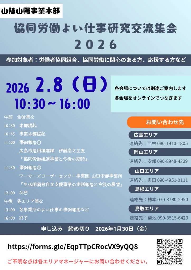 【山陰山陽エリア】2/8協同労働よい仕事研究交流集会2026 開催!